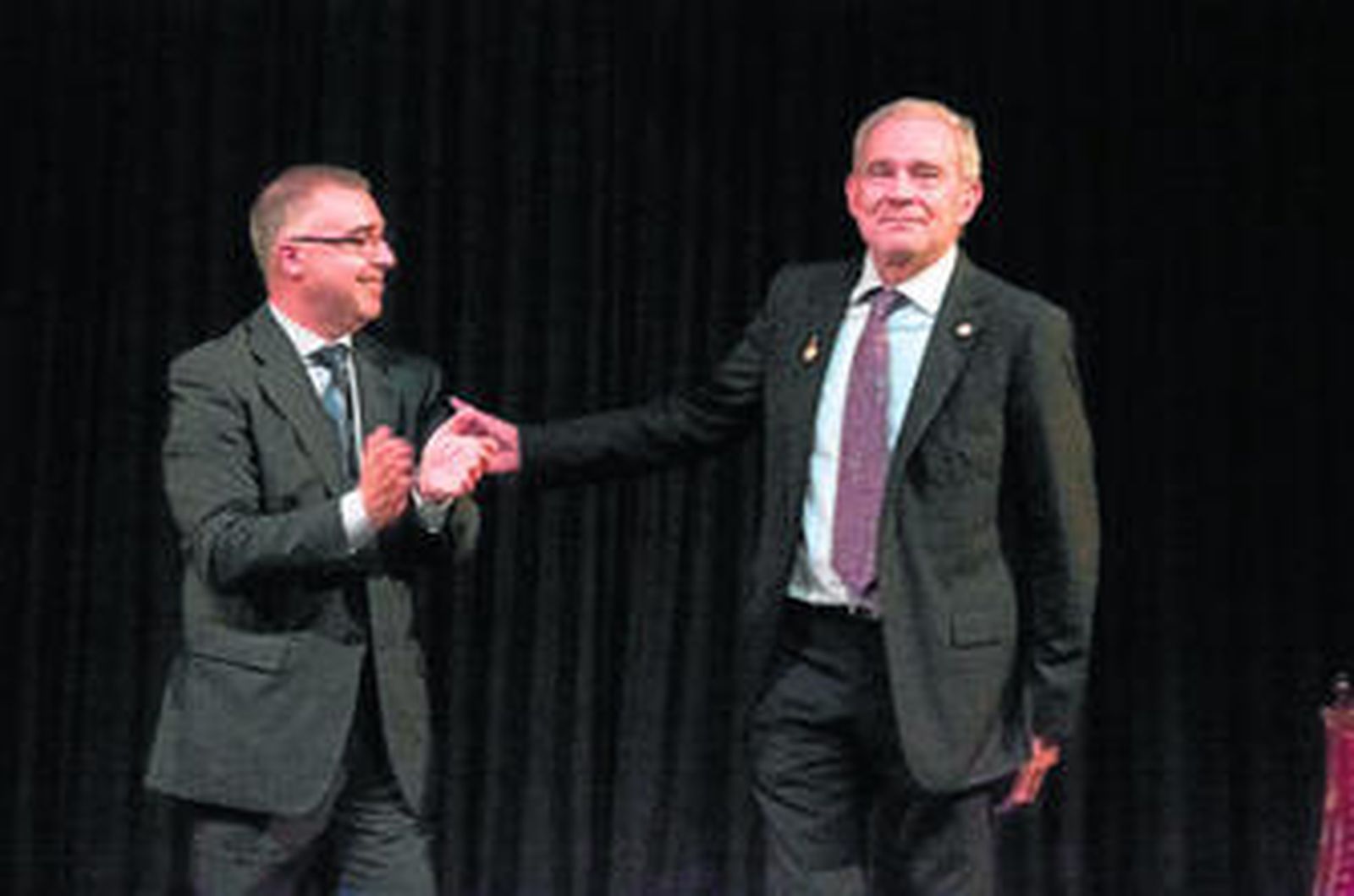 Tras su palabra llegó el momento de prender de la solapa de la chaqueta de Gómez Asencio la insignia de Oro que le distingue ya como estepeño ilustre, como hombre querido y reconocido por su pueblo, aunque la distancia y el tiempo lo hayan separado de la ciudad durante más de cuarenta años.