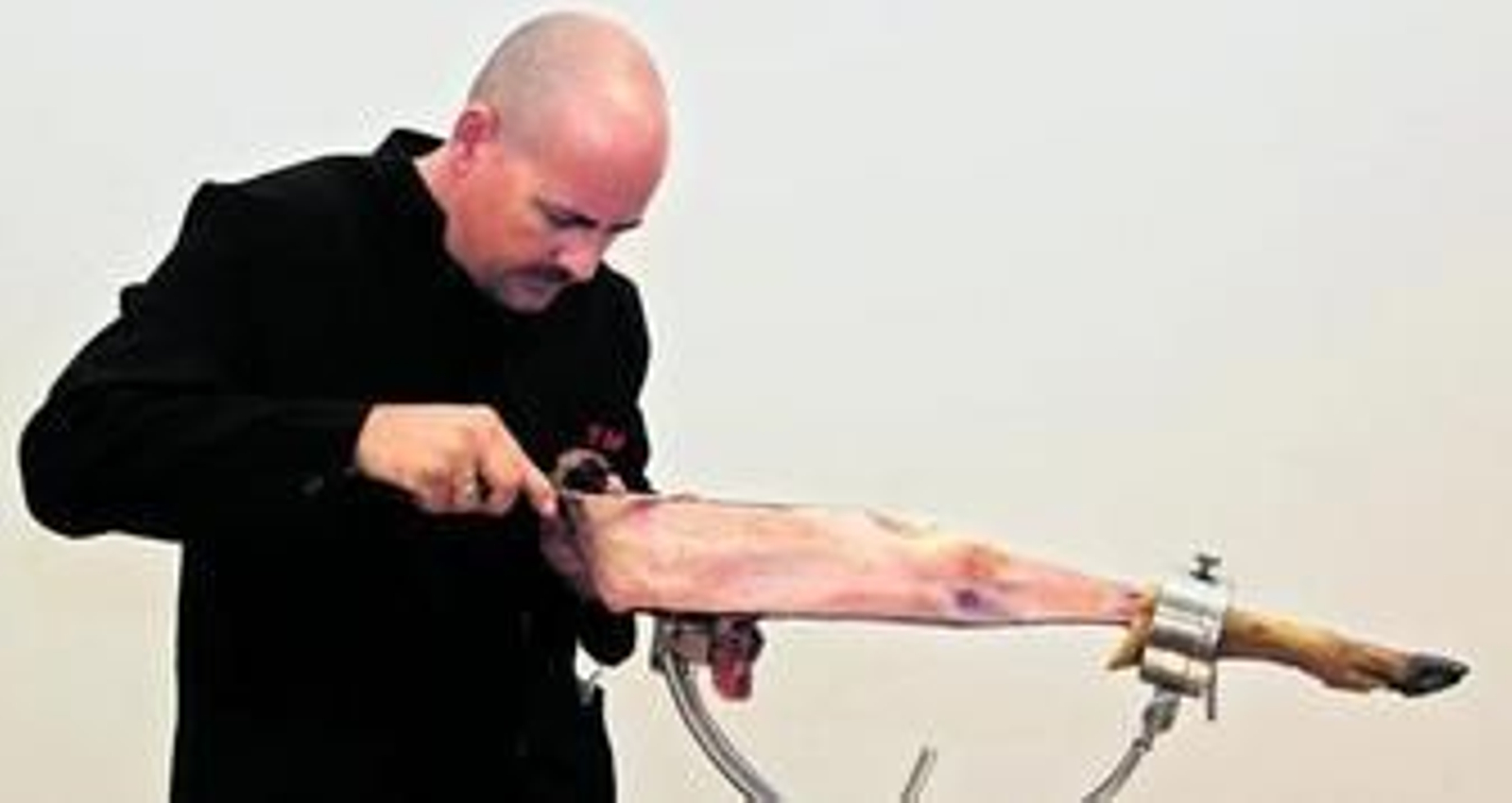 Cortador profesional de jamón, asiste a eventos internacionales promocionando el producto ibérico