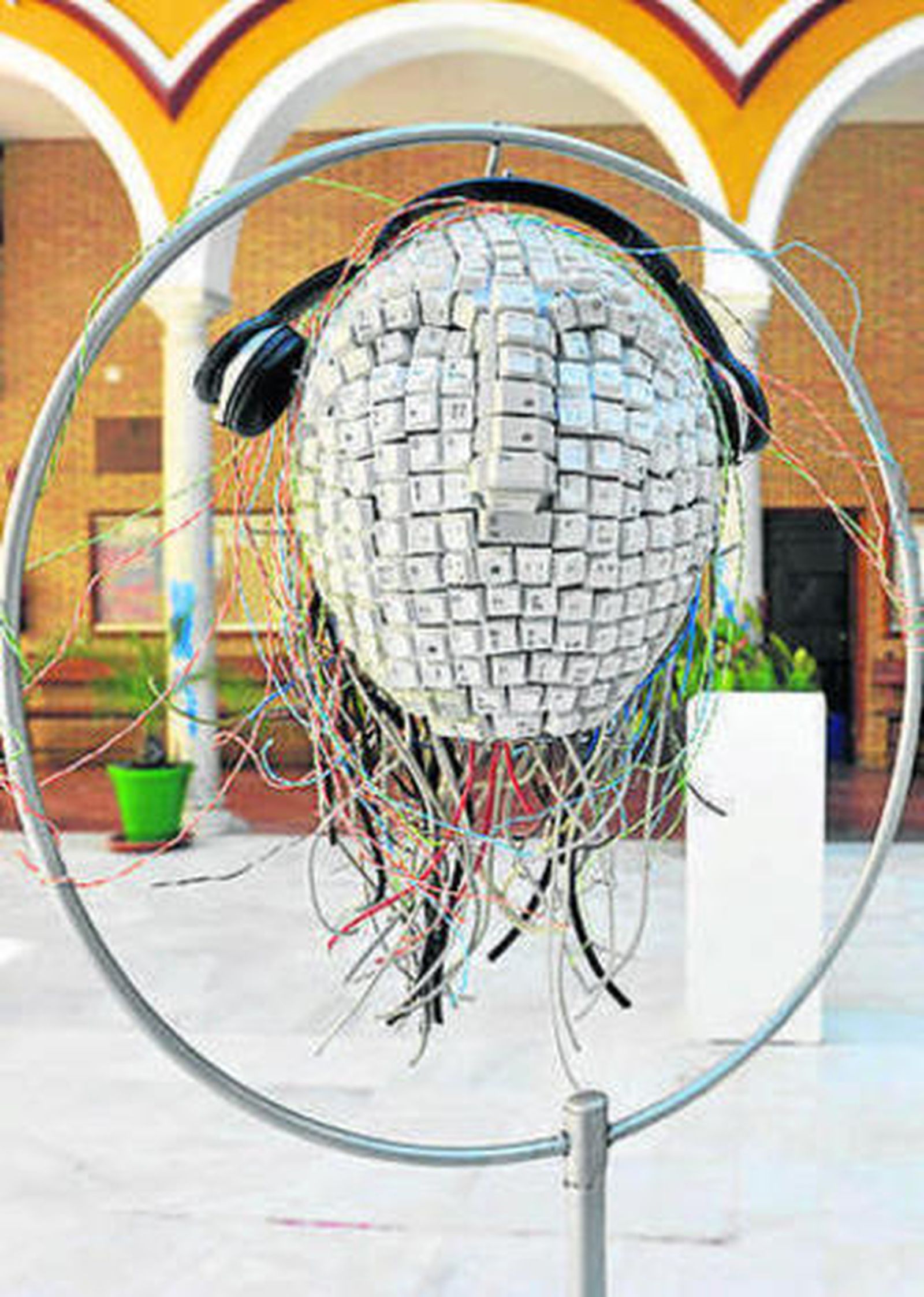 ¿Puede realizarse una escultura con los componentes de una placa base? ¿Es posible transformar teclados y ratones en obras de arte? Con estas sugerencias arranca la primera edición de los Premios Artir, una actividad de innovación docente impulsada por la profesora del Departamento de Escultura Raquel Barrionuevo y en la que han participado 95 de sus alumnos de la asignatura Fundamentos de la Escultura II. Se trata del primer certamen de escultura hecha con residuos electrónicos reciclados aportados por la empresa C&G IT Solutions. Fuentes de alimentación, carcasas de portátiles, teclas, pantallas, ventiladores… que ya no funcionan y que normalmente son desechados en las reparaciones llevadas a cabo en los laboratorios de dicha empresa pueden verse estos días transformados en la exposición que acoge el patio de la Facultad de Bellas Artes.