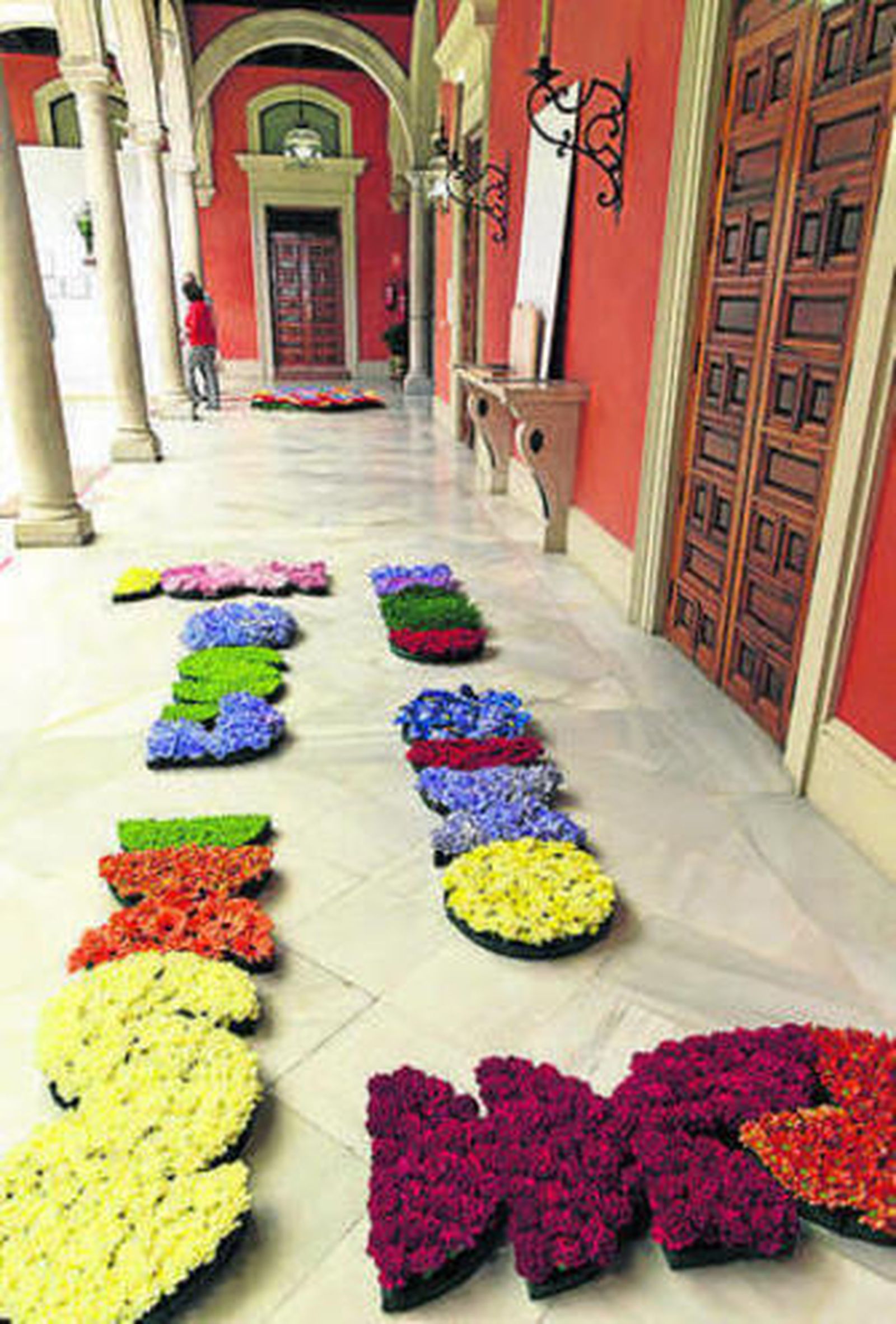 En el trabajo con flor viva se encuentran referencias a artistas plásticos internacionales tan interesantes como Willem de Rooij, Isa Genzken, Maria Loboda o el artista floral Azuma Makoto, que quizás permitan pensar en la flor como una especie de género del arte, o más bien un argumento, un interfaz de relación con la naturaleza que impone sus condiciones de elemento vivo y efímero. El patio de la Fundación Cajasol es el espacio de confluencia de estas cuatro propuestas en forma de instalaciones, que, reunidas, necesariamente proponen otras lecturas cruzadas y un paisaje de estratos o capas. Un patio que se abre para ser paseado como un jardín interior pero con vocación pública.