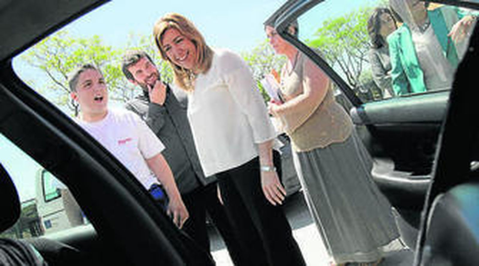 Una pizarra con el nombre de Susana Díaz escrito sobre ella destacaba ayer en una de las aulas de transición a la vida adulta del Centro de Educación Especial Ángel Rivière. En ella, varios jóvenes aprendían desde primera hora de la mañana qué es el Parlamento andaluz, cómo funciona y quiénes son sus inquilinos. Esta clase especial tenía como pretexto la visita que la presidenta de la Junta de Andalucía realizó ayer al mediodía a las instalaciones que la Asociación Autismo Sevilla tiene en Sevilla Este.