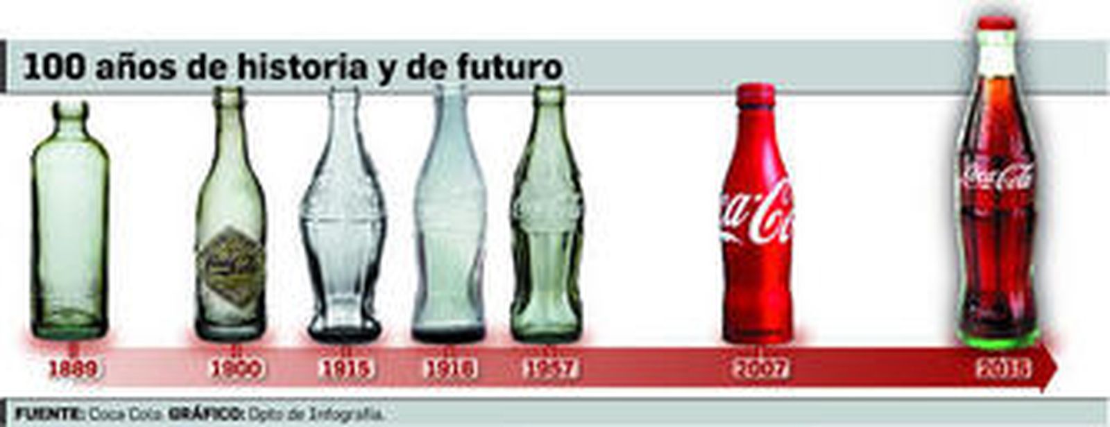 Aquel envase creado en 1915 para contener la fórmula secreta que desarrolló John Pemberton desde 1886 se convirtió poco después en un símbolo, siendo en 1950 el primer producto comercial que protagonizó la portada de la revista Time. Con el objetivo de seguir avanzando en una estrategia de marca, Coca-Cola decidió este año fusionar en el nuevo diseño la iconocidad del original y la innovación: la botella es más ligera, lleva una etiqueta transparente y el elemento que diferencia la variedad de la bebida es la chapa. Además de la estética, desarrollada por un equipo español, el prototipo permitirá acceder a los consumidores a contenidos digitales exclusivos, interactuar y generar conversaciones.