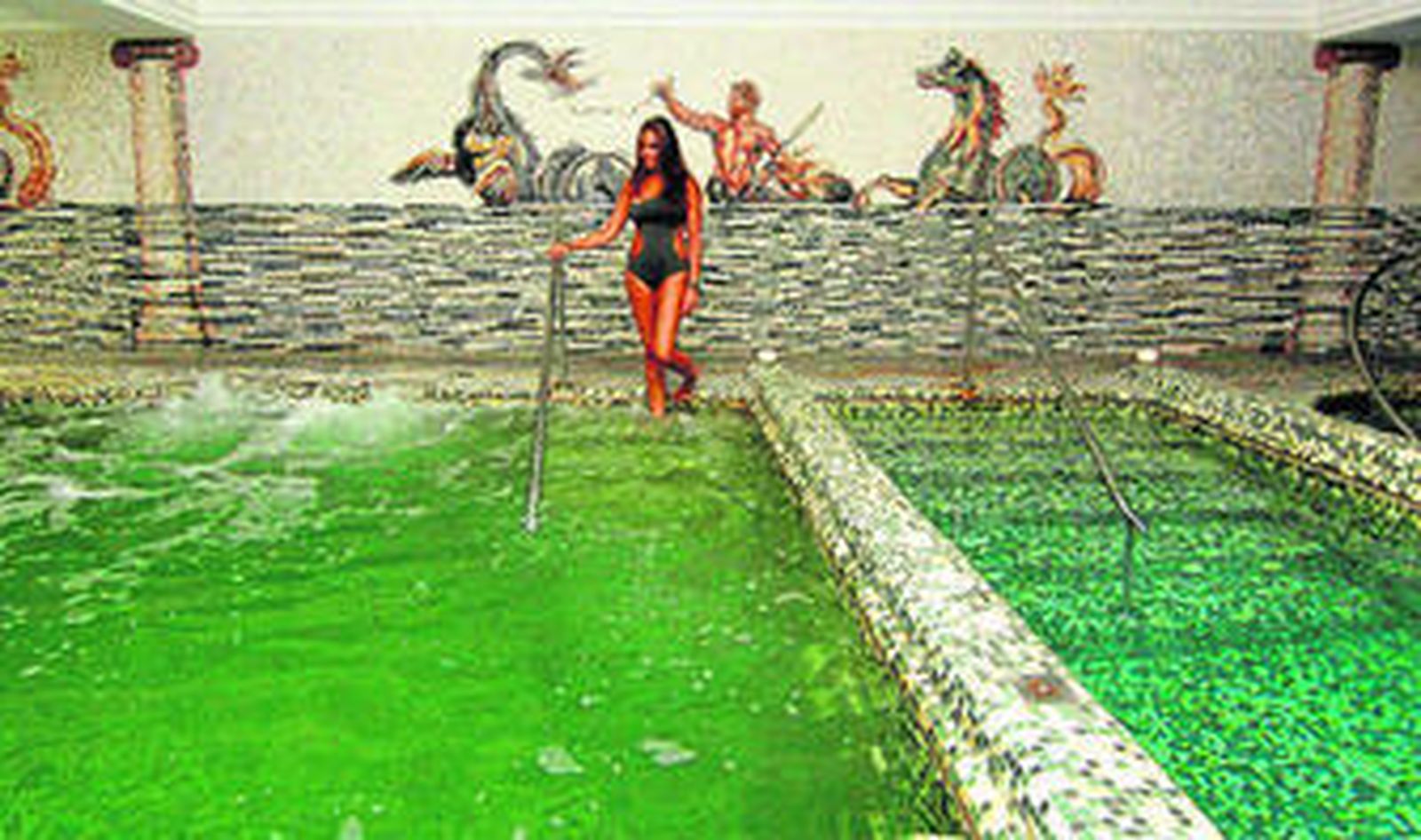 Mosaicos de mármol con motivos mitológicos en las paredes y marinos en el suelo, inspirados en los grabados de varios libros grecolatinos y realizados tesela a tesela durante cuatro años por un artista toledano. Esta estampa se completa con lujosos artesonados blancos y dorados para conformar el ambierte de unas instalaciones donde uno no siente perder el control del tiempo. Un espacio dentro del Hotel Casas de la Judería para trasladarse al pasado -se cree que en la misma ubicación hubo unos baños romanos hace siglos- y descansar y renovarse física e, incluso, psíquicamente. El Grupo Kumaras gestiona este balneario dentro del establecimiento hotelero bajo el nombre de Las Termas de Hispalis, que se caracteriza por ofrecer sus instalaciones y tratamientos terapeúticos y de belleza de una forma privada o semiprivada.
