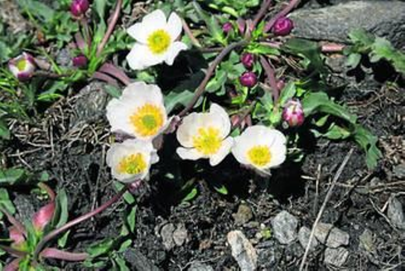 Ranillo de las nieves (Ranunculus acetosellifolius). Endémica. Junto con el botón de oro son ranúnculos, nombre que proviene de rana porque están asociados a lugares encharcados.