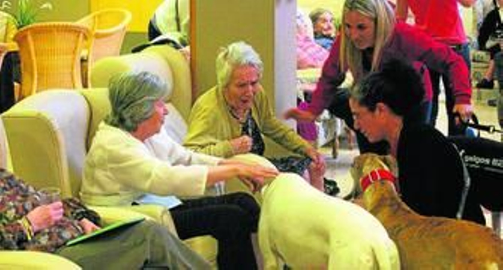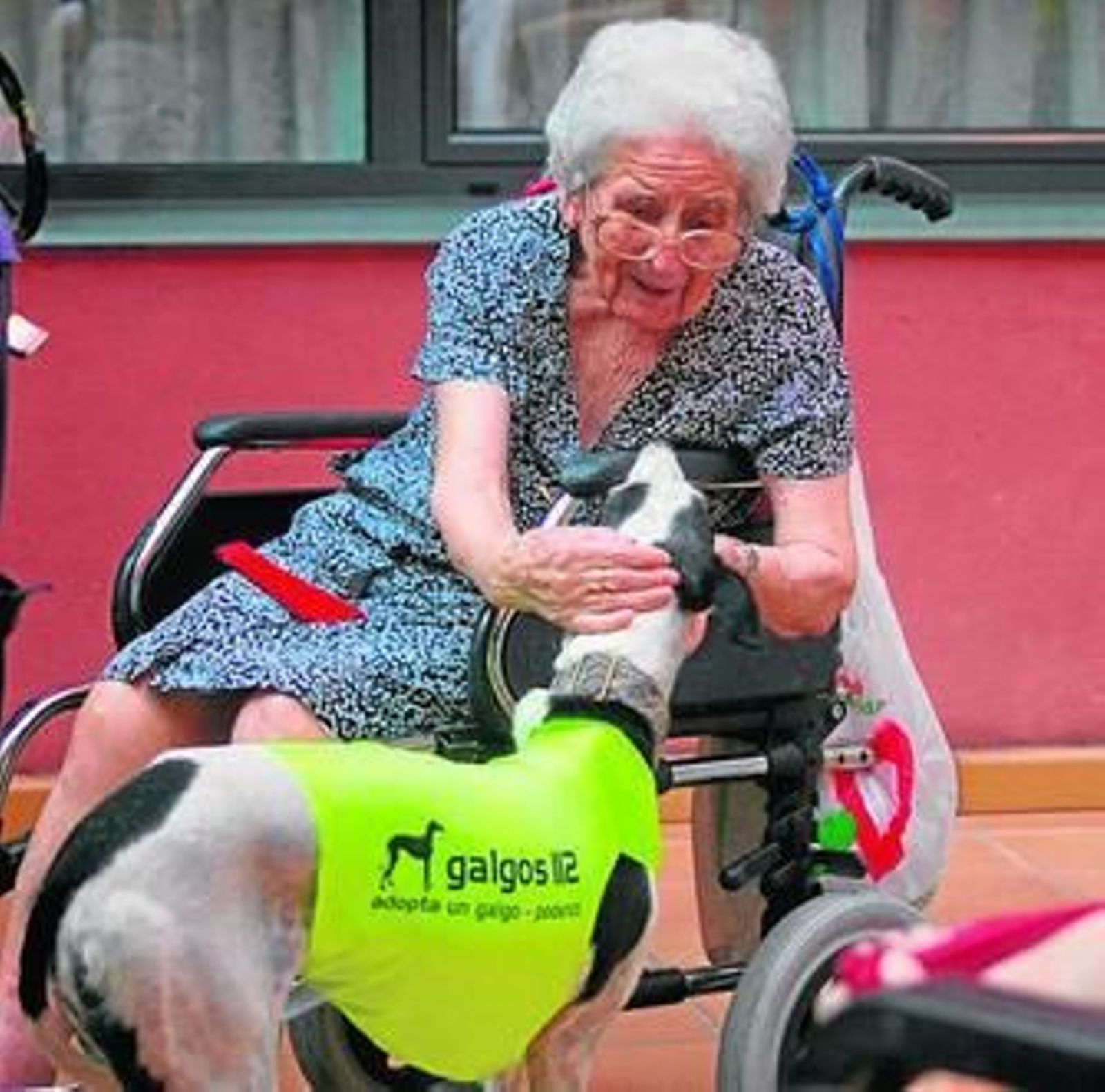 Ya ha cumplido 100 años y, a veces, los recuerdos de toda una vida se agolpan en su cabeza de manera confusa. Acariciando a uno de los galgos que visitan la residencia en la que vive, sin embargo, aflora en ella un sentimiento -su amor por los perros- que dibuja en su cara una sonrisa. Junto al resto de usuarios de la residencia Ballesol Azalea, Rosario participaba hace unas semanas en una sesión de terapia con animales impulsada por la asociación Galgos 112, que además de cuidar y buscar un hogar a perros maltratados y abandonados, desde hace dos años desarrolla también con ellos programas sociales dirigidos a niños, ancianos y personas con discapacidad. Los beneficios que aporta a los mayores la terapia asistida con animales de compañía ha abierto un interesante campo de investigación -la Universidad de Sevilla fue pionera en España con su Máster en Aplicaciones del Perro a la Terapéutica Humana- y la experiencia en este centro sevillano ha sido tan positiva que la dirección planea integrarla a partir de septiembre en su programa de terapia ocupacional. Para los galgos, algunos aún intentando superar las secuelas de un pasado lleno de maltratos, la terapia es una manera de devolverles la confianza en el ser humano.