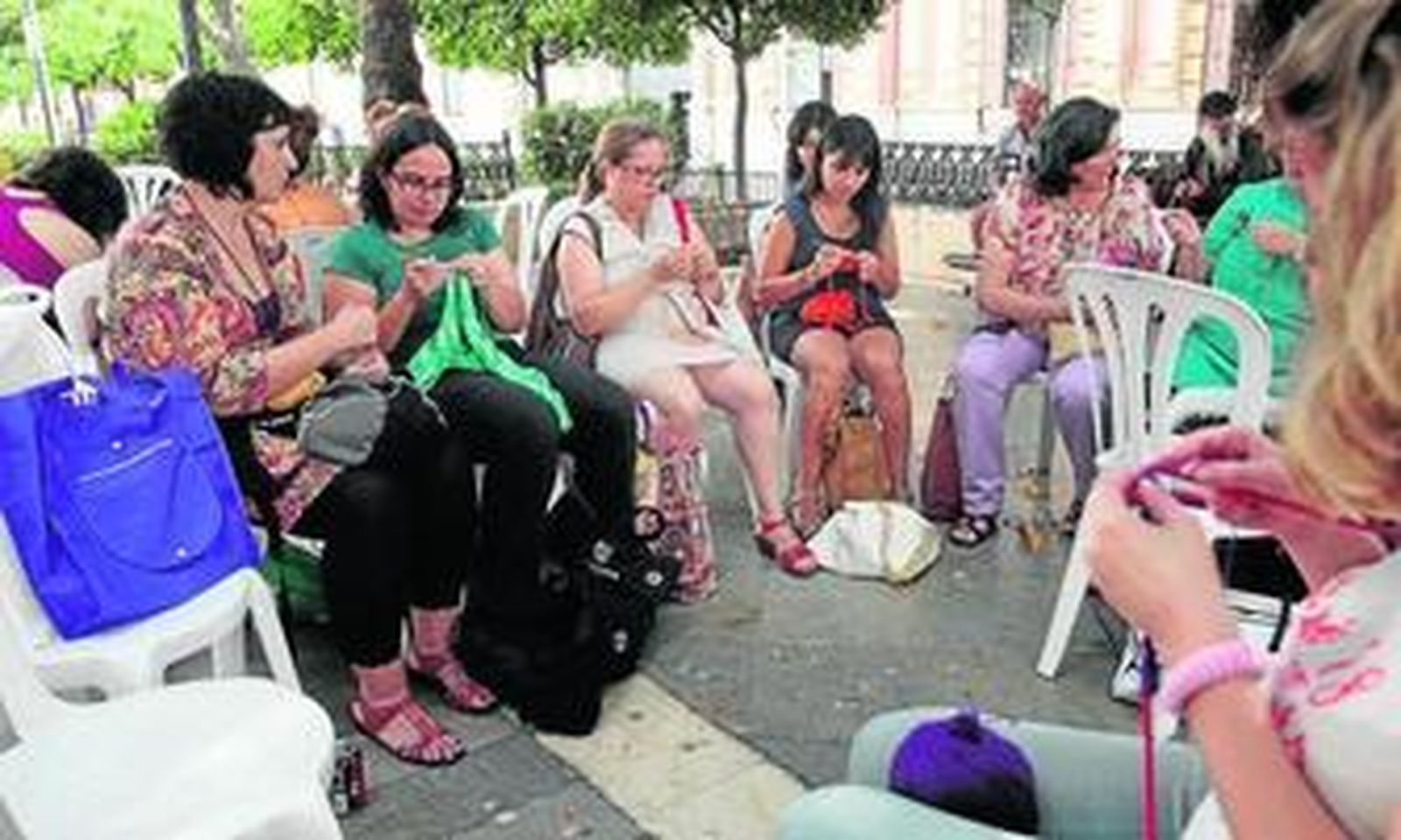 Las tejedoras sevillanas del blog No-Madeja-Das fueron el grupo más numeroso. El año pasado también participaron en la iniciativa. Algunas echaron de menos que este tipo de eventos se produzca con más asiduidad, mientas otras resaltaron el valor social que tiene esta afición: "El reunirnos nos enriquece, aprendemos cosas nuevas, además hacemos amistades y disfrutamos de lo que nos gusta. Hay quien va al fútbol y hay quien teje, que es más útil y productivo".