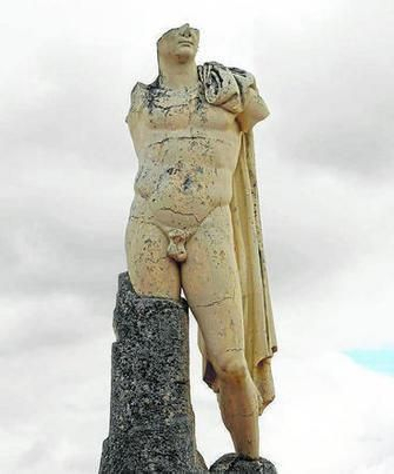A los pies de la copia de la escultura de Trajano -la original está en el Museo Arqueológico-, hay un momento para el descanso y para la contemplación. Desde este punto, uno de los más altos de la ruta, el guía aprovecha para explicar el proceso de divinización que Adriano emprendió sobre la figura de su tío, el emperador Trajano, proyecto que deja su huella en esta nova urbs que se visita. Por ejemplo, con el Traianeum, el magno edificio del que Pozuelo muestra una infografía para ayudar a la imaginación del grupo.
